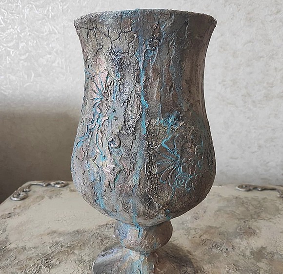 Созданию кашпо для цветов или вазы Освоите авторские техники декора: трафаретный оттиск на округлой форме с помощью салфетки, создание эффекта ржавчины, коррозия металла, метод сухой кисти, сгибание пластикового декора. Сможете создавать гармоничные работы, используя приёмы, изученные на мастер-классе.