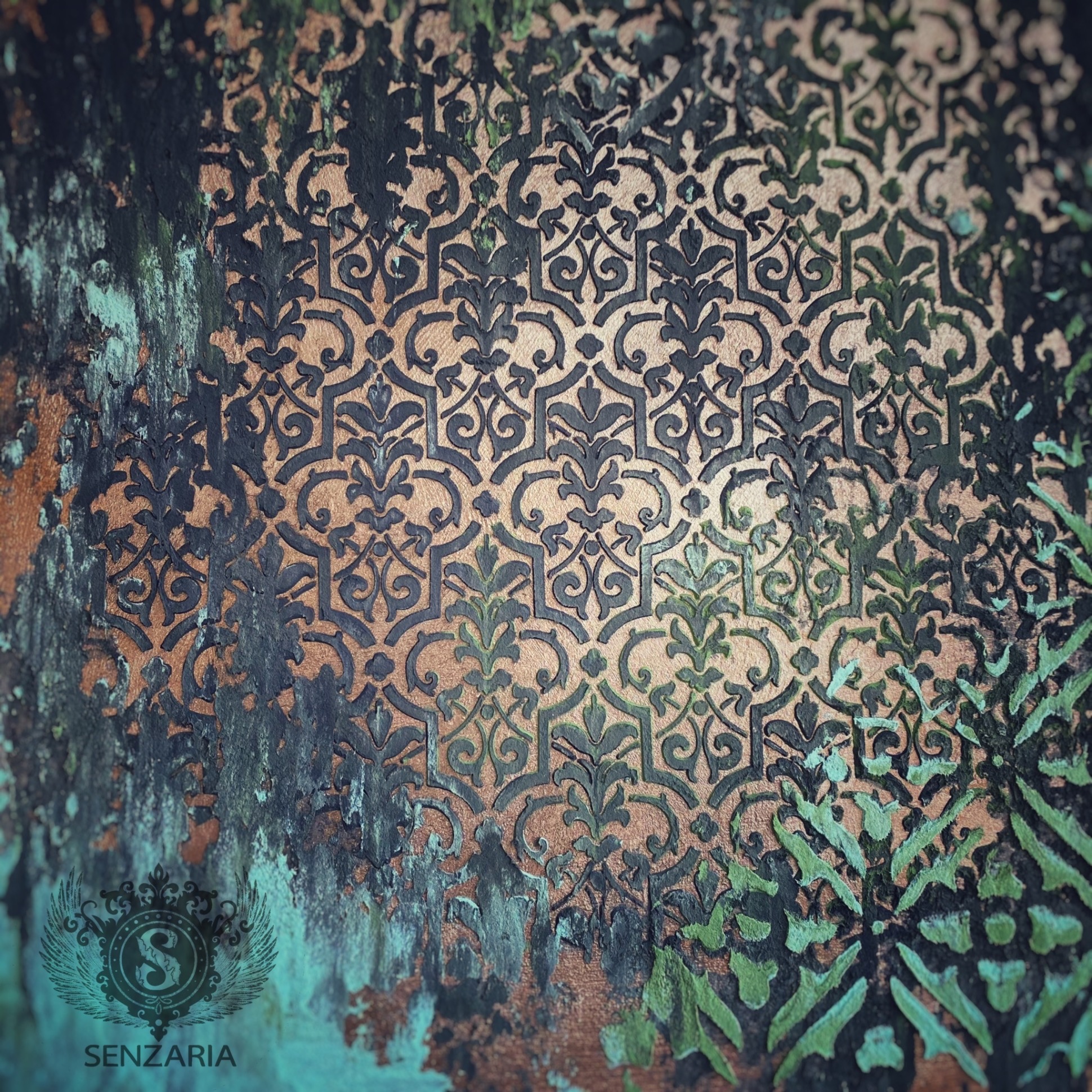 Первое, что меня впечатлило при знакомстве с Сензарией, это трафарет Асатур. Именно его я хотела в первую очередь. Именно с ним я попробовала выполнить урок из промо-курса Открытые двери 1. Большое спасибо за такой необыкновенный трафарет.