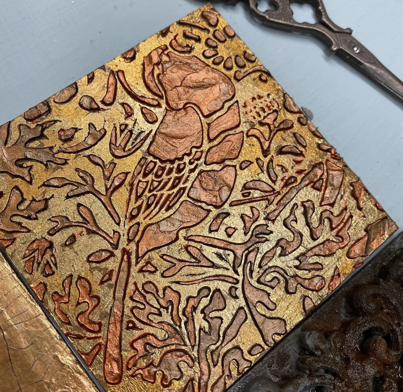 Этот трафарет достался мне в подарок. Маленького размера, но такой насыщенный деталями. Очень качественный и очень красивый.