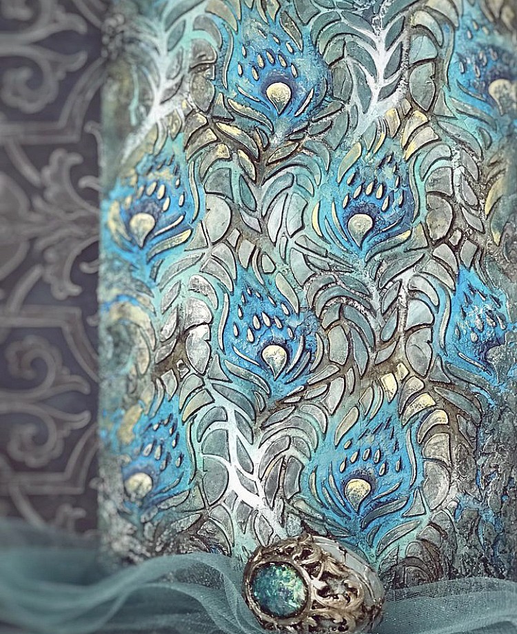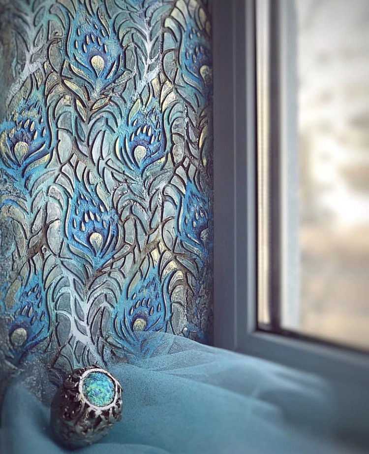Роскошный трафарет под штукатурку с перьями павлина.