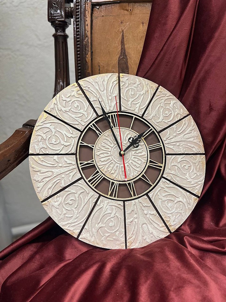 Теперь вы можете оформить своими руками стол или циферблат часов.